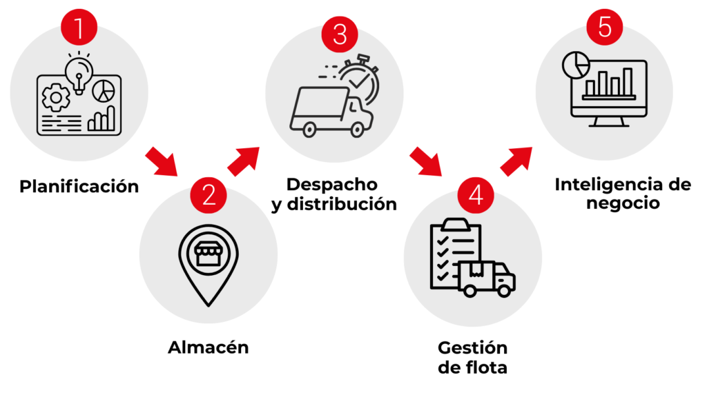 Te compartimos algunas de nuestras soluciones para optimizar tu negocio: planificación, optimización del warehouse, documentación digital, operación en campo, ruteo inteligente, gestión de flota, administración de fletes e inteligencia analítica.